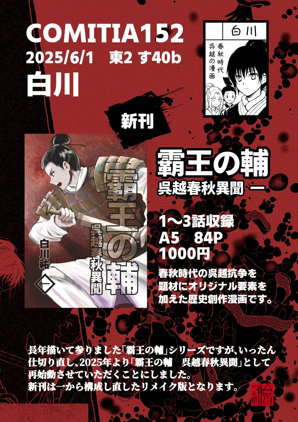 25年11月24日(月祝) 南4ホール く43a「白川」でコミティア154に参加します。
